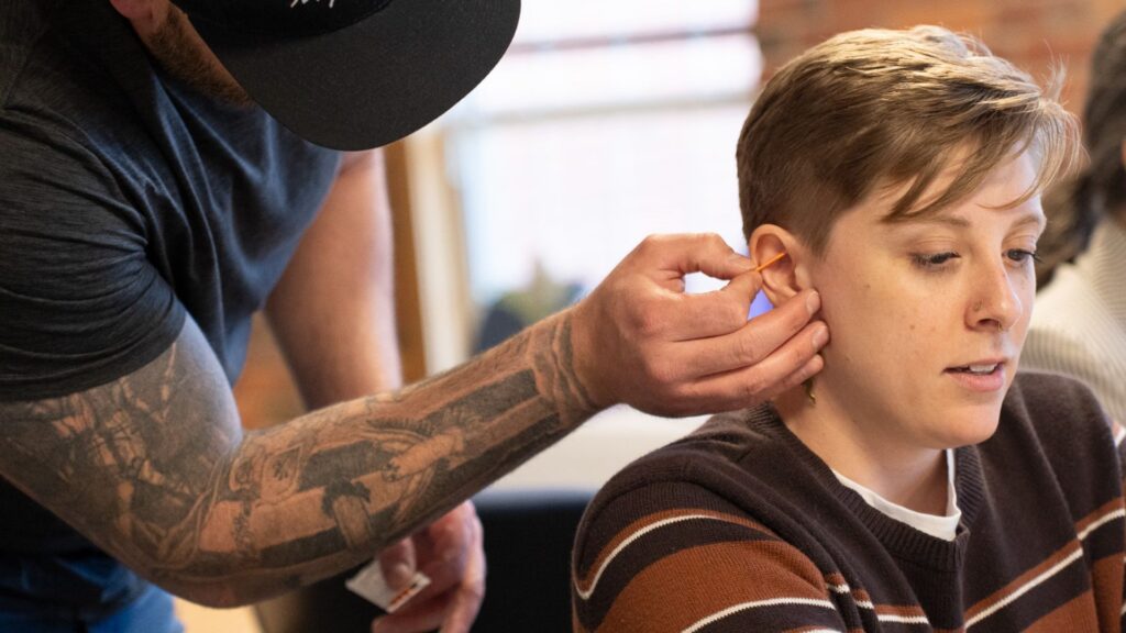 Ear Acupuncture – Needles are applied 1cm beneath the skin to 5 median points that help reduce stress, depression, anxiety, PTSD and post-acute withdrawal symptoms.